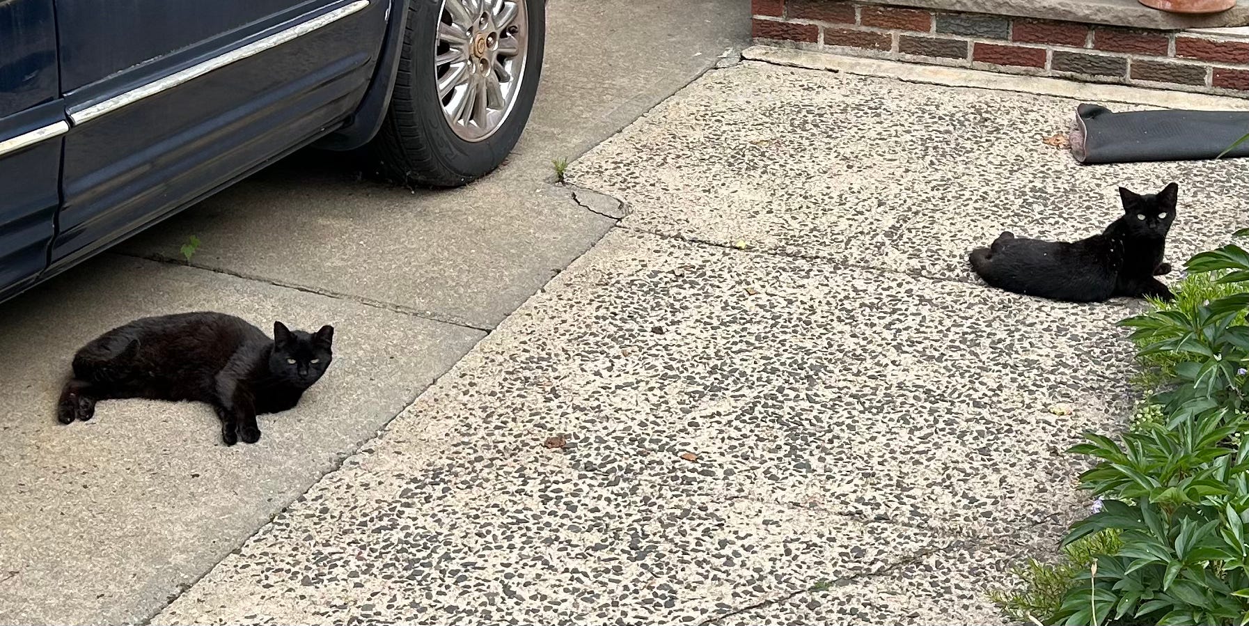 How did I forget this last week? I have no idea. But this week, I present two to make up for it. They may not be strictly feral (they looked awful comfortable on that front lawn) but let’s just say they have that feral attitude. I do not have names for them, as the names of black cats are secret to all of us. They know what their names are.